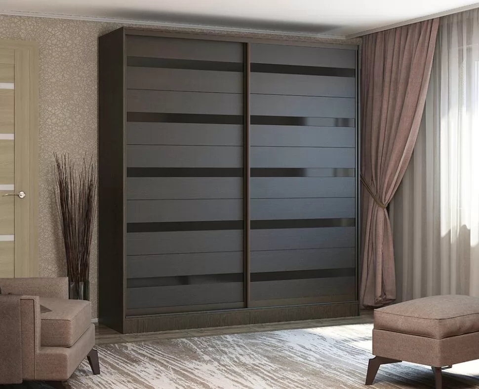 Шкаф-купе "Лотос-1" (ш1,5*г610*в2200мм), ЛДСП венге/МДФ венге матов-лакобель черная в Тюмени
