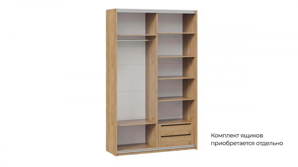 Шкаф-купе с 1 глухой и 1 зеркальной дверями «Оскар Скания» Ручка белая, Дуб Крафт золотой, Кашемир, Кашемир сатин G45681 в Тюмени