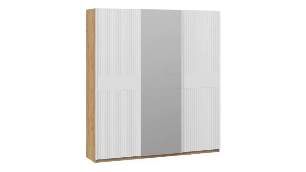 Шкаф-купе с 2 глухими и 1 зеркальной дверями «Оскар Хилтон» Ручка белая, Дуб Крафт золотой, Белый матовый G46574 в Тюмени