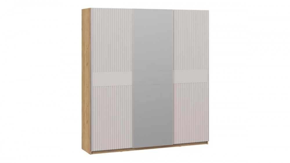 Шкаф-купе с 2 глухими и 1 зеркальной дверями «Оскар Хилтон» Ручка белая, Дуб Крафт золотой, Кашемир, Кашемир сатин G45832 в Тюмени
