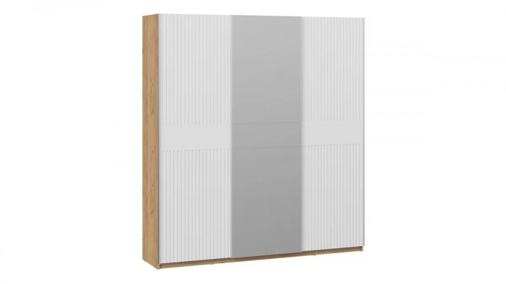 Шкаф-купе с 2 глухими и 1 зеркальной дверями «Оскар Хилтон» Ручка серебро, Дуб Крафт золотой, Белый матовый G46293 в Тюмени