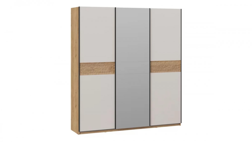 Шкаф-купе с 2 глухими и 1 зеркальной дверями «Оскар Скания» Ручка черная, Дуб Крафт золотой, Кашемир, Дуб тортугга G45700 в Тюмени