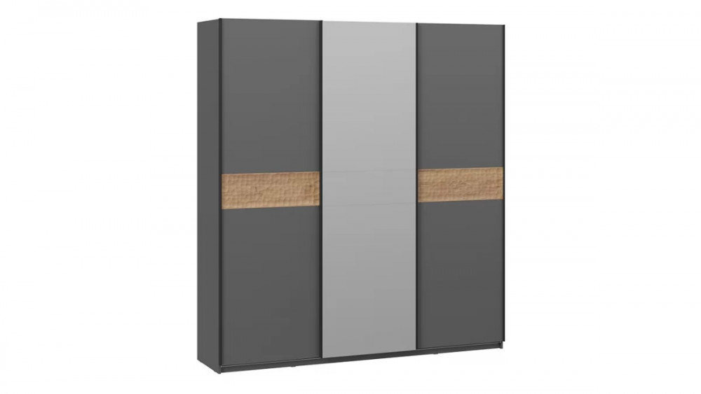 Шкаф-купе с 2 глухими и 1 зеркальной дверями «Оскар Скания» Ручка черная, Серый графит, Дуб тортугга G46085 в Тюмени