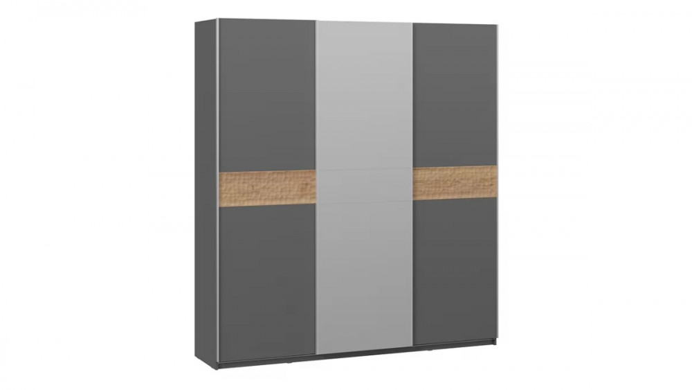Шкаф-купе с 2 глухими и 1 зеркальной дверями «Оскар Скания» Ручка серебро, Серый графит, Дуб тортугга G46331 в Тюмени