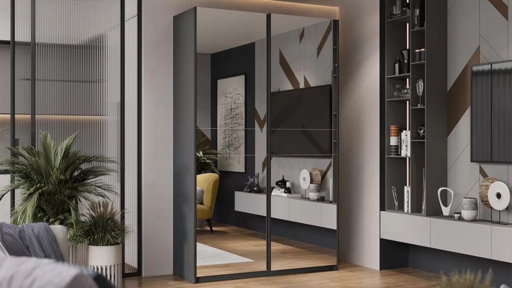 Шкаф-купе с 2 зеркальными дверями «Оскар» Ручка черная, Серый графит G46388 в Тюмени
