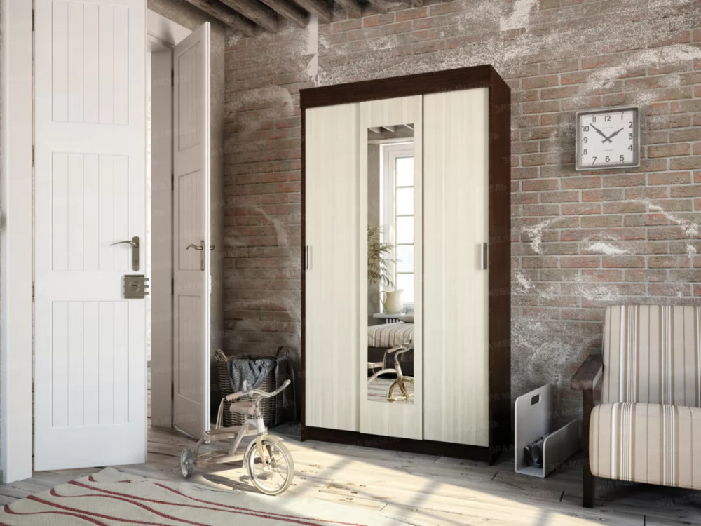 Шкаф-купе может быть изготовлен в двух вариантах: Венге + сосна Лоредо/ ясень Шимо тёмный + ясень Шимо светлый.