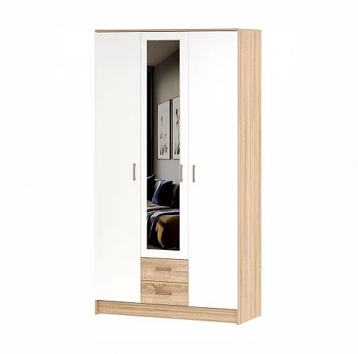 БЕАТРИС Шкаф ТРИО с зер., 3дв. 2ящ. (ш1200*г487в2200мм), дуб сонома/белый глянец-дуб сонома в Тюмени