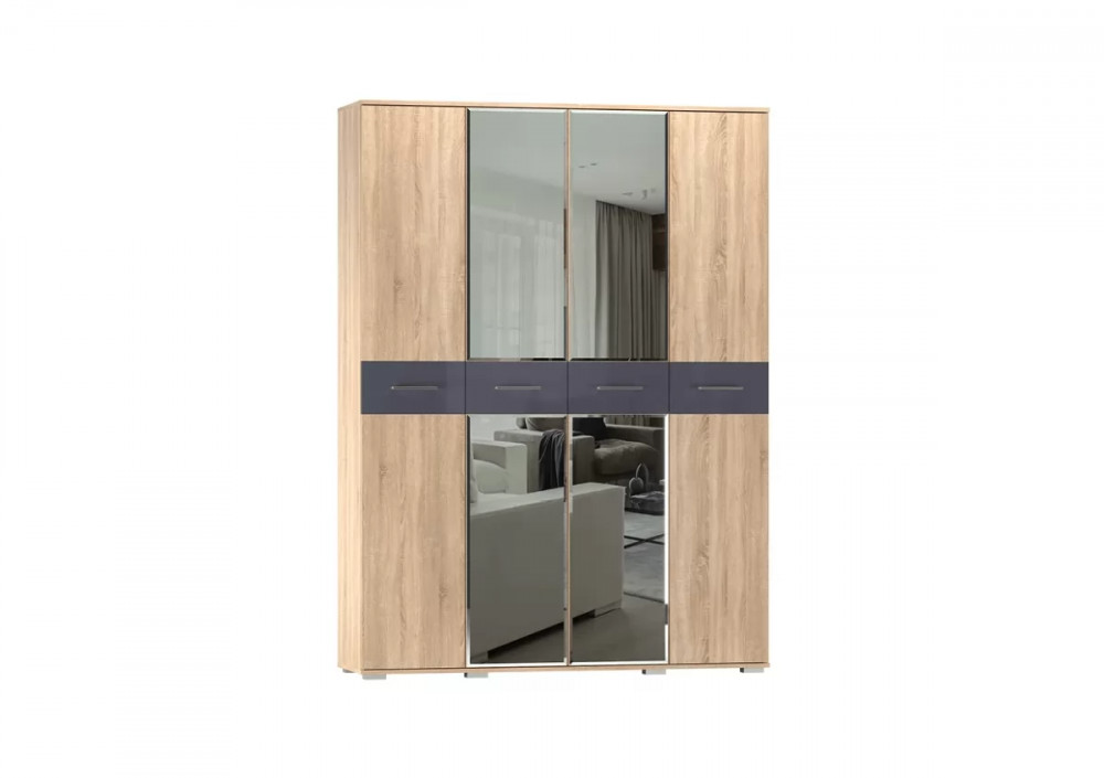 Бьянка Шкаф 4 ств. Дуб Сонома/Графит Глянец в Тюмени