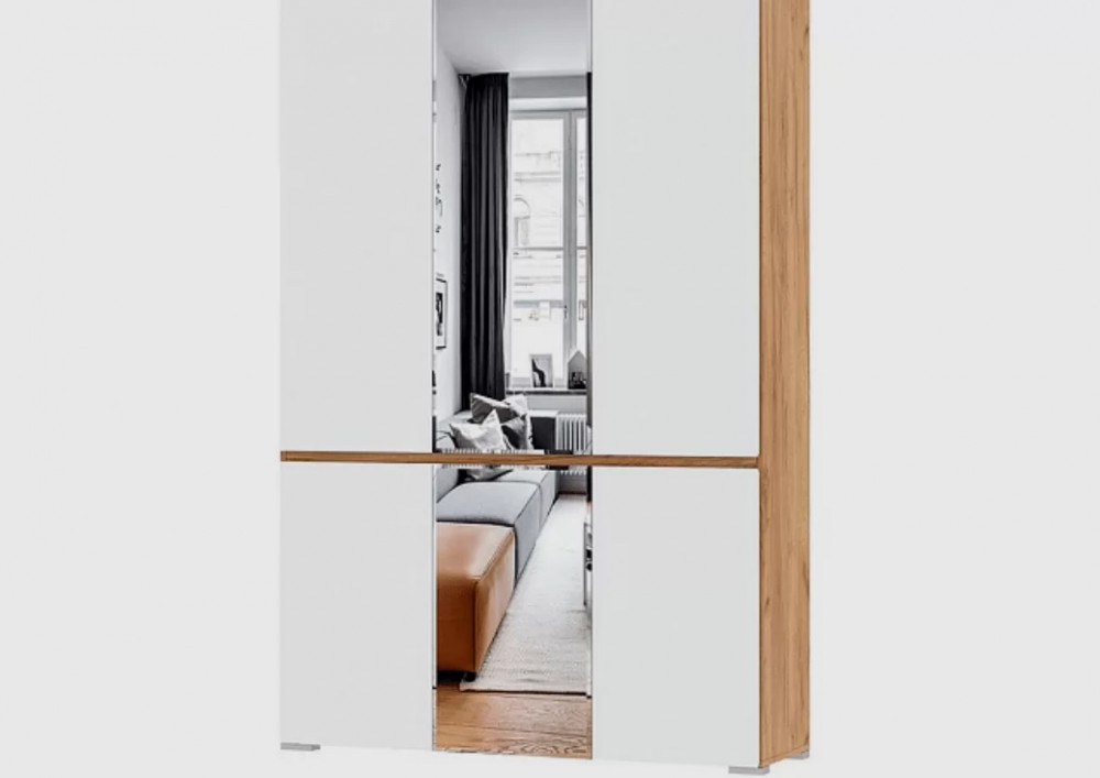 ГРЕТТА Шкаф 4С2ЗР с зерк. (ш1350*г411*в2120мм), ЛДСП дуб крафт золотой/ЛДСП белый в Тюмени