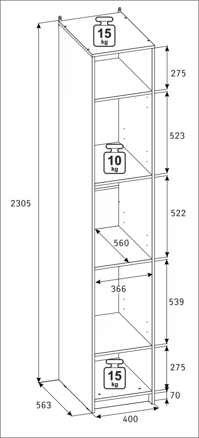 | Размер (ВхШхГ) | 2305х400х563 мм |
