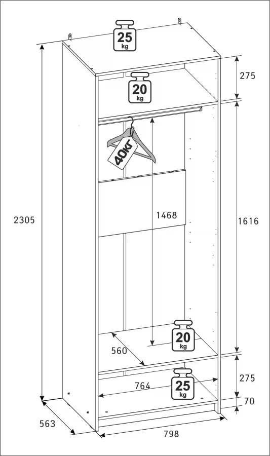 | Размер (ВхШхГ) | 2305х798х563 мм |