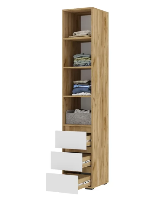 ХЕЛЕН ПН03 Пенал закрытый 1дв., 3ящ. (ш400*г460*в2100мм), Дуб Крафт Золотой/Белый в Тюмени