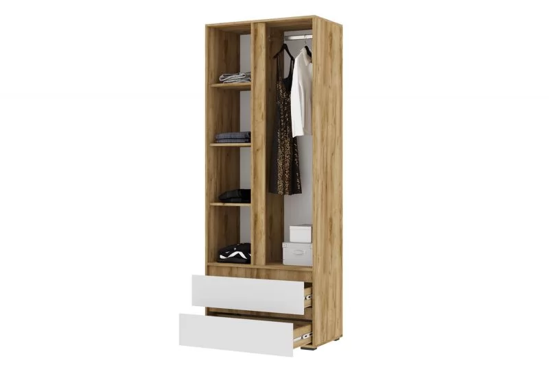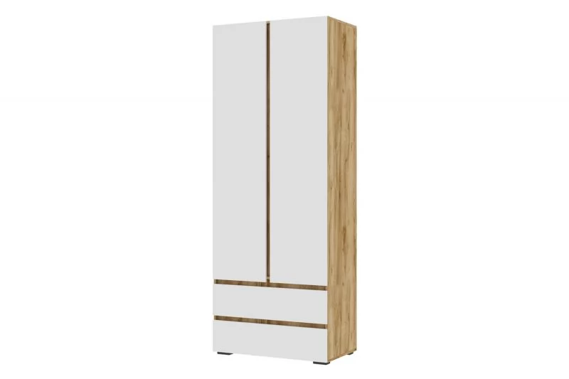 ХЕЛЕН ШК01 Шкаф 2х ств., 2ящ., (ш802*г460*в2100мм), Дуб Крафт Золотой/Белый в Тюмени