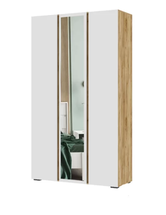ХЕЛЕН ШК02 Шкаф 3-х ств., с зеркалом (ш1200*г460*в2100мм), Дуб Крафт Золотой/Белый в Тюмени