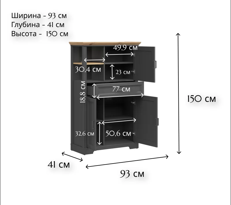 | Размер (ШxВxГ) | 930x1500x410 мм |