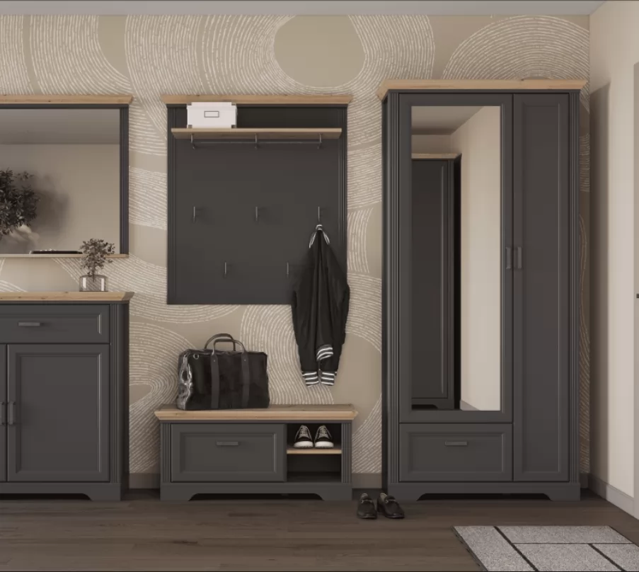 Распашной шкаф с ящиком Jasmin графит/дуб артизан SZF1L1D1S гармонично дополнит прихожую, спальню или детскую.