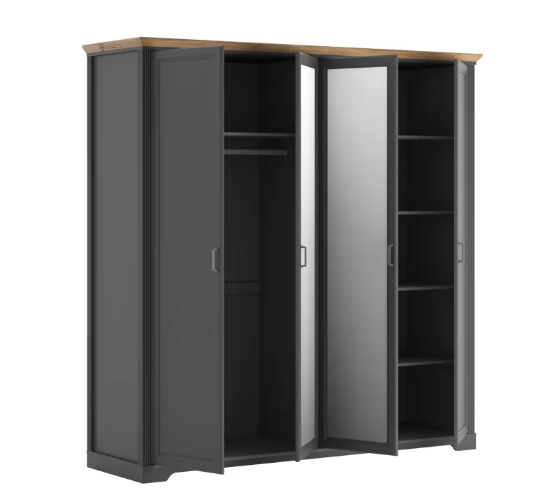 Распашной шкаф с 4-мя створками и зеркалом Jasmin графит/дуб артизан SZF2L2D достойно займет свое место в вашей спальне.