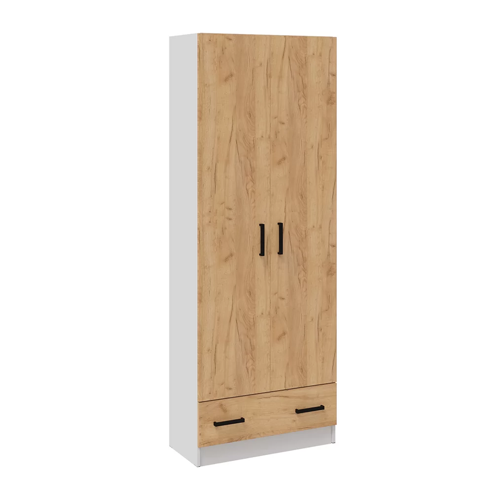 КЕВИН Шкаф 2-х ств. с 1-м ящ. (ш800*г375*в2150мм), Белый /Дуб крафт золотой в Тюмени