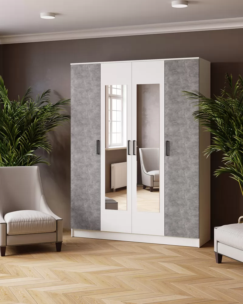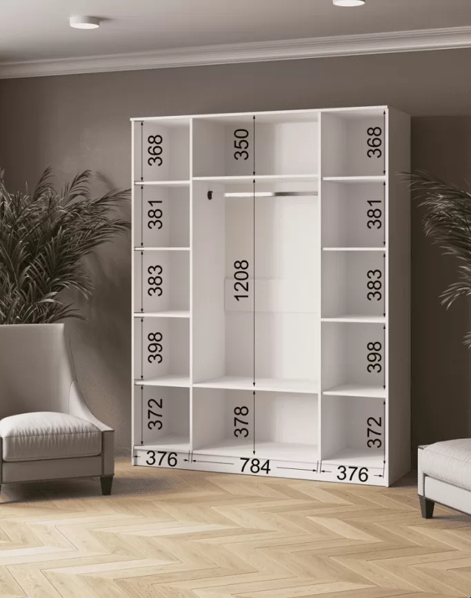 ЛАРС Шкаф комбинированный 1,6 с зеркалами (ш1600*г510*в2100мм), ЛДСП Белый/ ЛДСП Ателье светлое в Тюмени