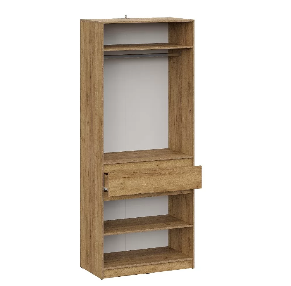 Размеры: ширина - 90 см, высота - 221.6 см, глубина - 50.6 см.Материалы: ЛДСП.Цвет: Дуб Крафт Золотой, Графит серый.Стиль: Современный.Объем товара: 0.152 м3.Производство: Россия.Вес: 79,5 кг.Количество упаковок: 4.