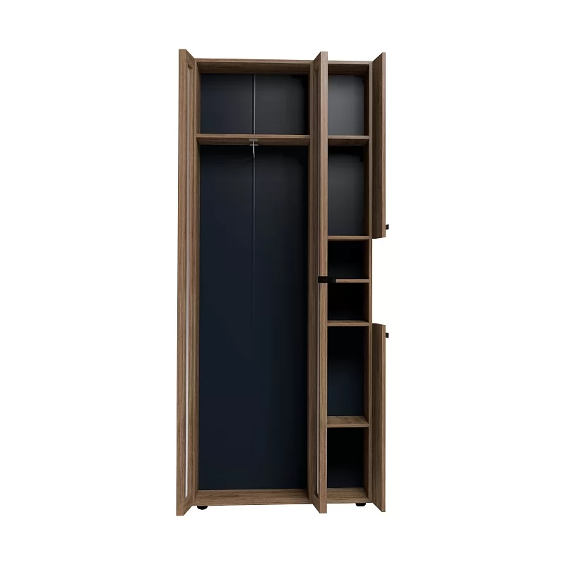 Nature 87 Шкаф для одежды и белья создаст все необходимые условия для хранения в прихожей верхней одежды и аксессуаров. В этом шкафу есть все необходимое для размещения верхней одежды: выдвижная штанга, верхняя полка, ряд регулируемых полок. Большая секция оснащена выдвижной штангой для развешивания пальто и курток на плечиках. Выдвижная штанга выдерживает вес до 10 кг.