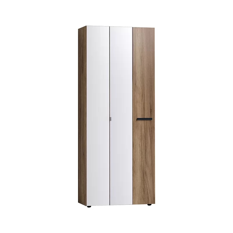 Компактный трехстворчатый NEO 87 Шкаф для одежды будет уместен в прихожей любых размеров. Глухой фасад в актуальном декоре Дуб Табачный с ручкой из массива дерева. Один из зеркальных фасадов с металлической ручкой, чтобы открывать шкаф и при этом не оставлять следов на зеркале. В этом шкафу есть все необходимое для размещения верхней одежды: выдвижная штанга, верхняя полка, ряд регулируемых полок.