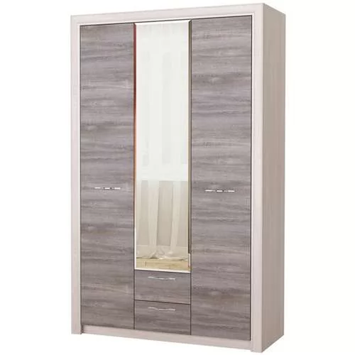 ОКТАВА Шкаф 3С2Я с зерк. (3дв, 2ящ) (ш1340*г570*в2170мм), дуб клабхаус серый в Тюмени