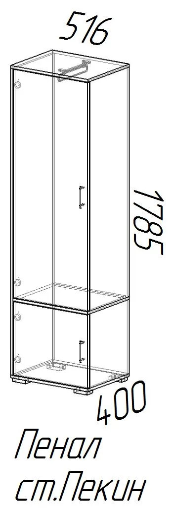 Пенал "ПЕКИН" – удачное дополнение для гостиной. В отдельном виде (без стенки) соответствует следующим параметрам: высота – 1785 мм, глубина – 400 мм, ширина 516 мм. Конструкция изготовлена из ЛДСП. Пенал отлично подойдёт для стенки в качестве дополнительной системы хранения. Имеет два отдела: верхний и нижний.