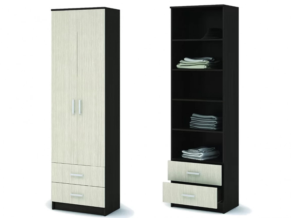 - Распашной шкаф с выдвижными ящиками и полками для хранения вещей