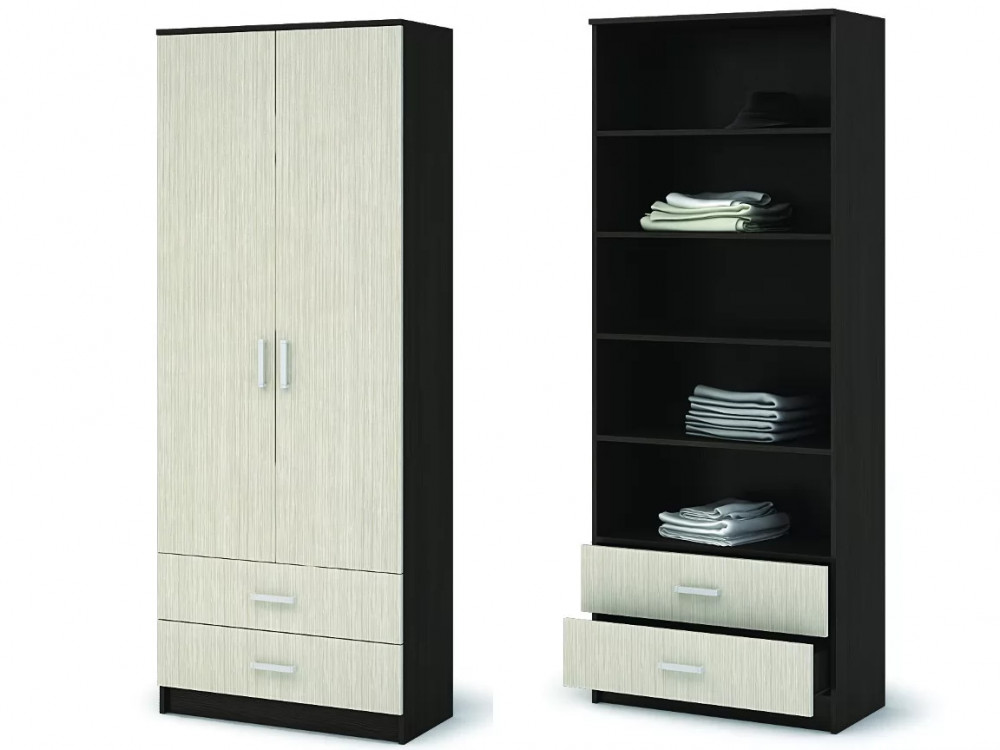 - Распашной шкаф с выдвижными ящиками и полками для хранения вещей