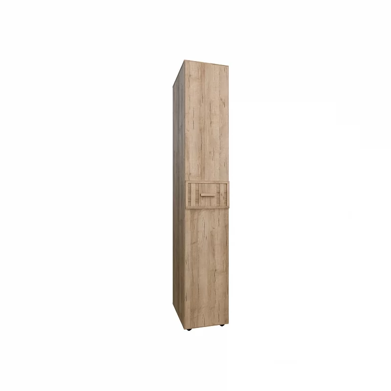 Шкаф для белья 55 - высокий и эргономичный модуль в спальню в декоре Дуб Серый. Простой в своем исполнении шкаф - пенал с гладким фасадом, декорирован рамочной вставкой с раскладкой и ручкой из массива. При своих скромных габаритах модуль обладает достаточной вместимостью, благодаря 4 регулируемым полкам и высоте 2300 мм. Мы рекомендуем обязательно крепить пенал к стене на подвесы.
