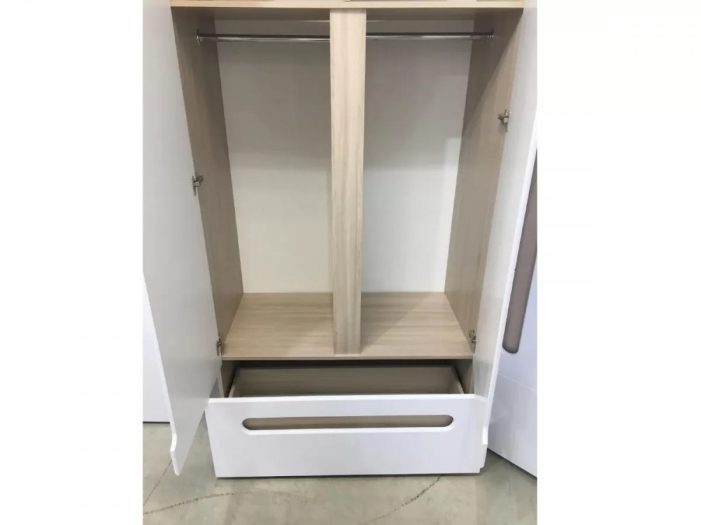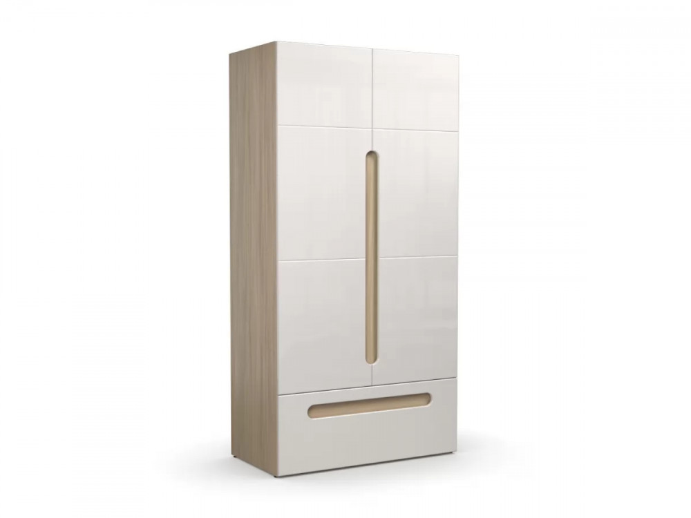 Шкаф 2-х створчатый с ящиком Палермо в цвете Шимо светлый/Белый глянец в Тюмени