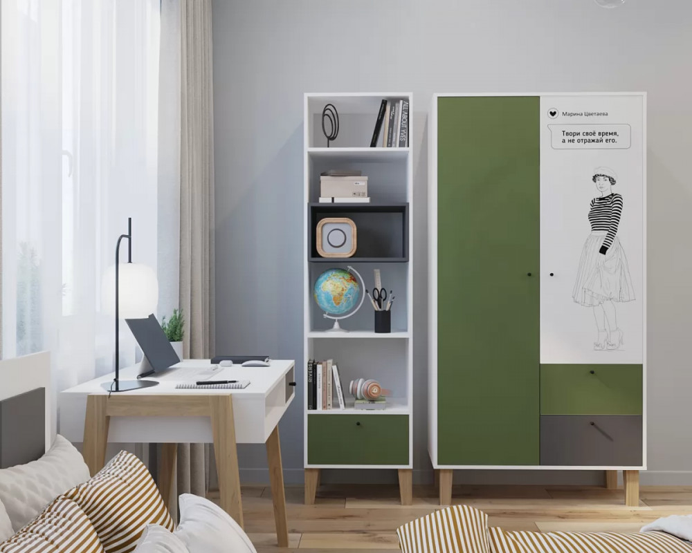 Цвет фасада / вставок: Олива, Темно-серый, Белый с рис."Цветаева"