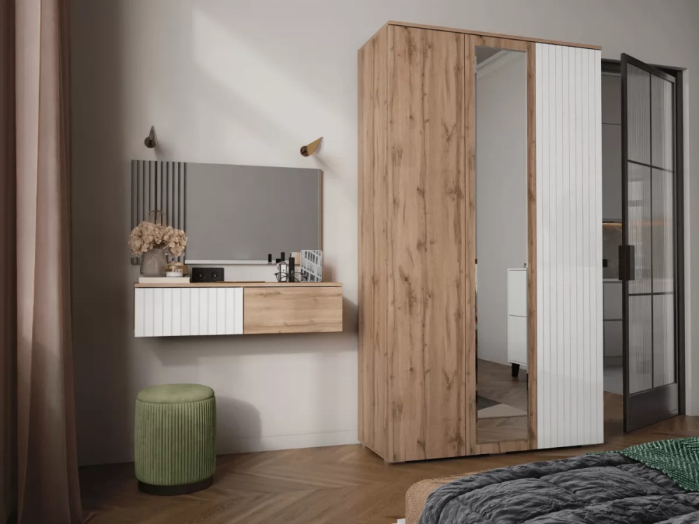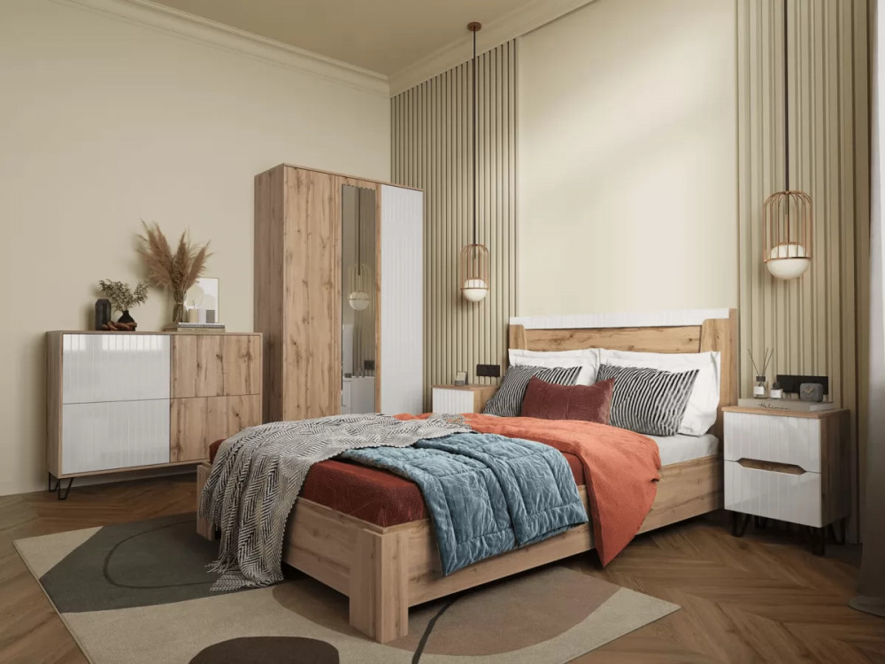 Модульная спальня «Ливерпуль» выполнена в самых актуальных сочетаниях 2023 года: спокойные цвета корпуса с ярким акцентом в виде фасада из МДФ. Опора в стиле «Лофт» притягивает взгляд. Благодаря системе открывания «push to open» изделия выполнено без ручек. Также в данном стиле выполнена модульная гостиная.