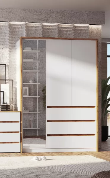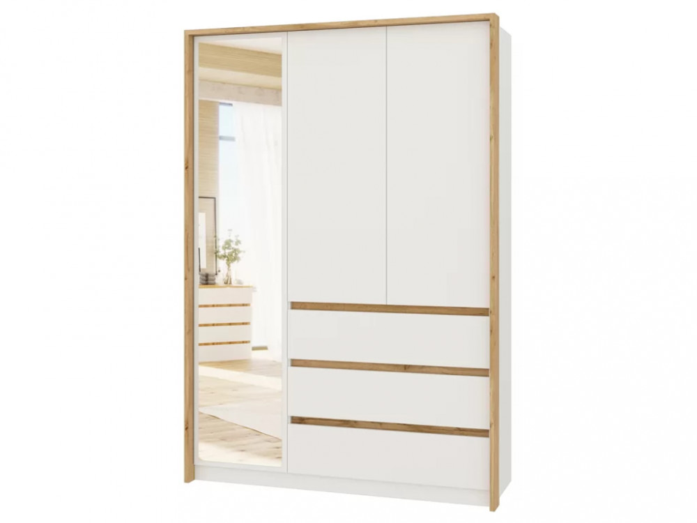 Шкаф 3-х створчатый Дубай Секция-10 Белый жемчуг/Дуб Вотан в Тюмени