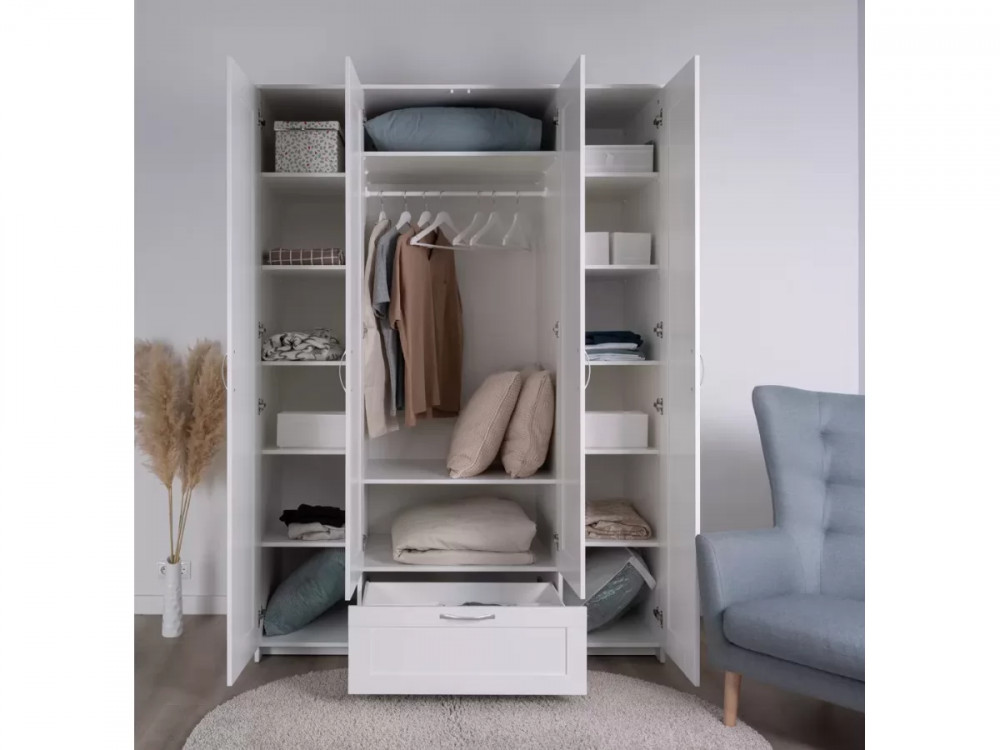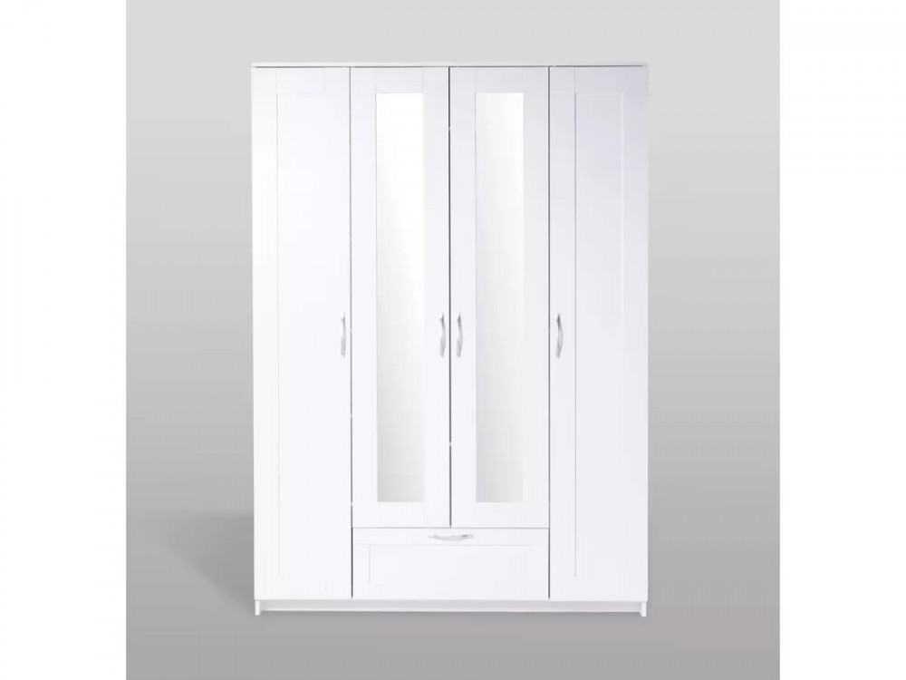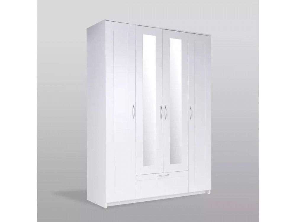 Шкаф 4 двери и 1 ящик 117х59х220 Сириус белый с 2 зеркалами в Тюмени