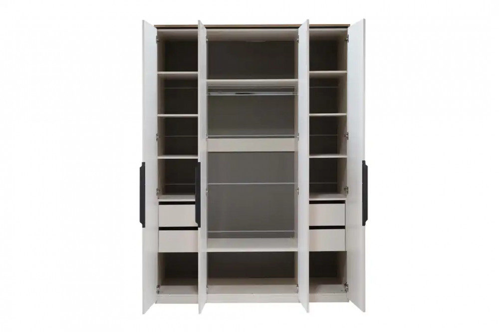 Вместительный шкаф с выдвижными ящиками и шариковыми направляющими создан для удобного хранения вещей. Современный дизайн подойдет для спальни, прихожей или гардеробной. Удобство хранения с необходимым для организации пространства: полки (открытые и выдвижные), ящики и штанга для одежды – все представлено в «ДЖУЛИИ 24».