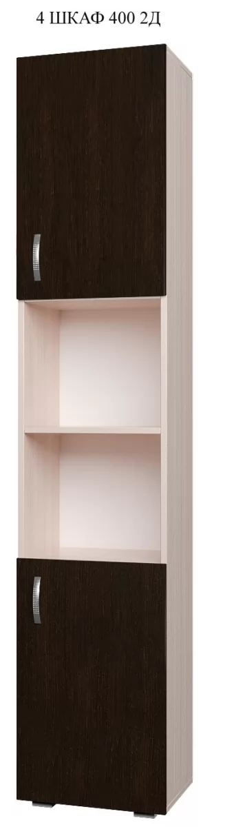 Удобный пенал ДМ 400 2Д с двумя распашными дверцами и открытыми полками можно использовать для хранения игрушек, книг или учебных принадлежностей в детской комнате или как стеллаж для документов в кабинете.