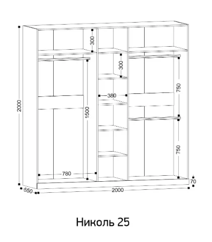 | Размер (ШхГхВ) | 2000х550х2000 мм |