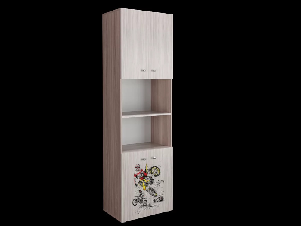 Шкаф 600 4Д из коллекции детской мебели "Форсаж" имеет две закрытые секции с распашными дверцами и открытые полки. Шкаф можно использовать для размещения книг, учебных принадлежностй или иных вещей.