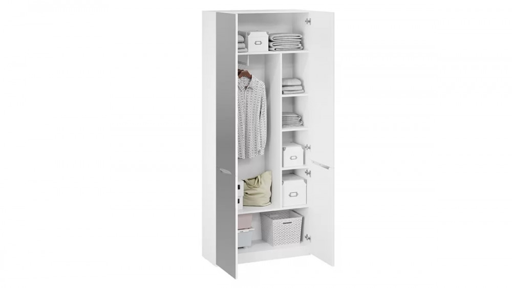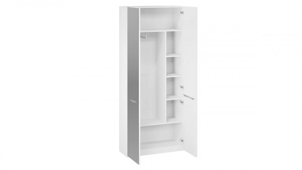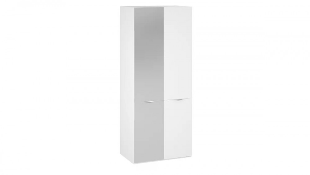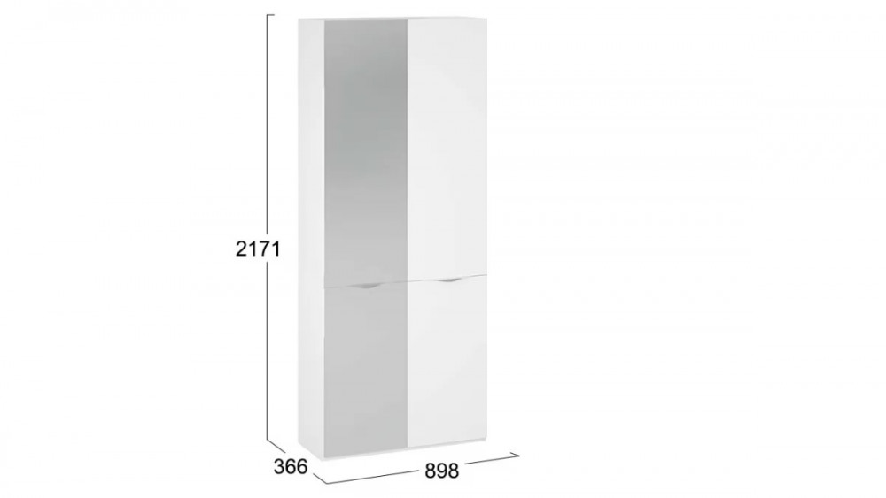Шкаф для одежды (366) с 1 зеркальной и 1 дверью со стеклом «Глосс» Белый Жемчуг, Белый глянец, Стекло в Тюмени