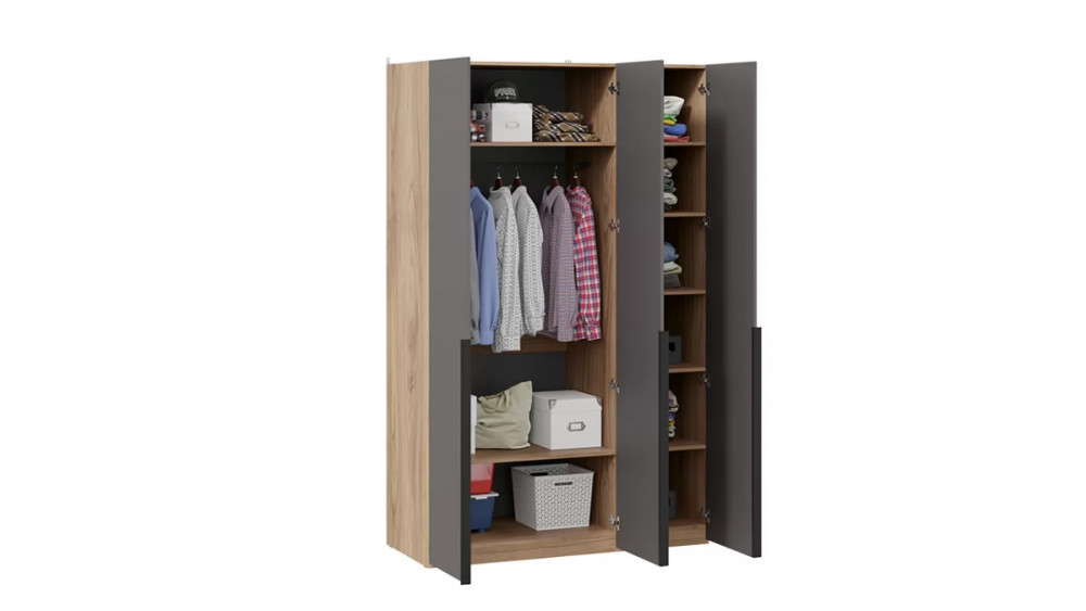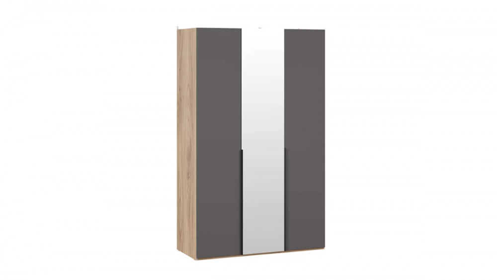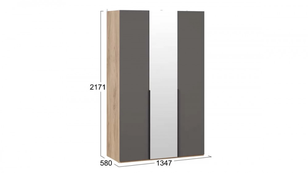 Шкаф для одежды (580) с 2 глухими и 1 зеркальной дверями «Порто» Яблоня Беллуно, Графит софт в Тюмени