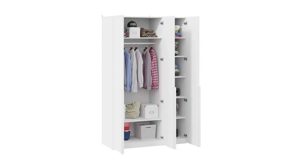 Шкаф для одежды (580) с 3 глухими дверями «Порто» Белый Жемчуг, Белый софт в Тюмени