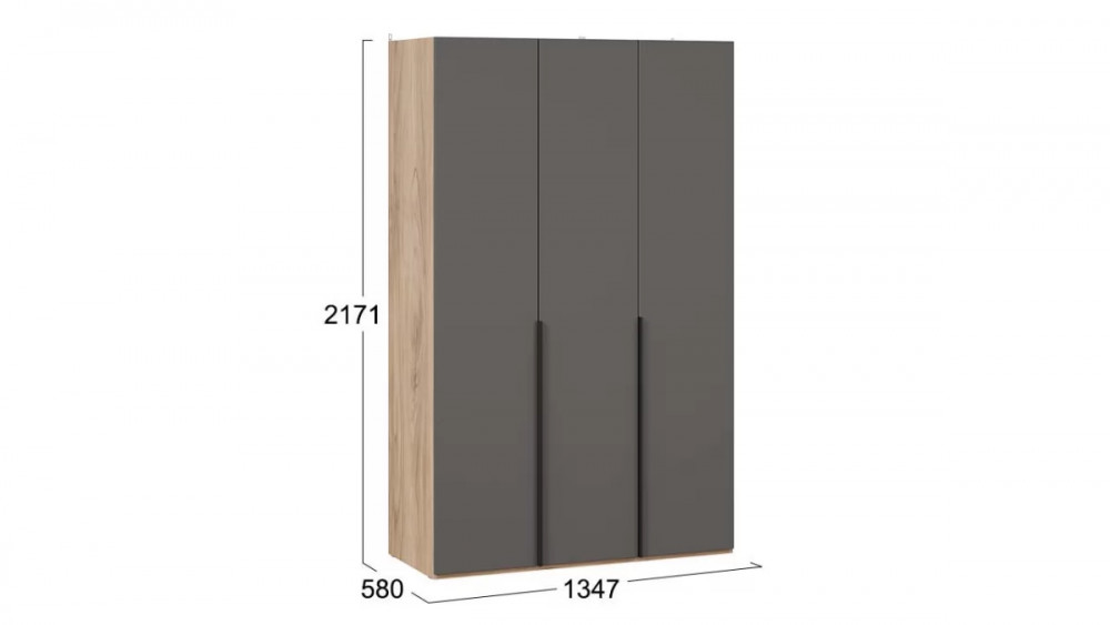 Шкаф для одежды (580) с 3 глухими дверями «Порто» Яблоня Беллуно, Графит софт в Тюмени
