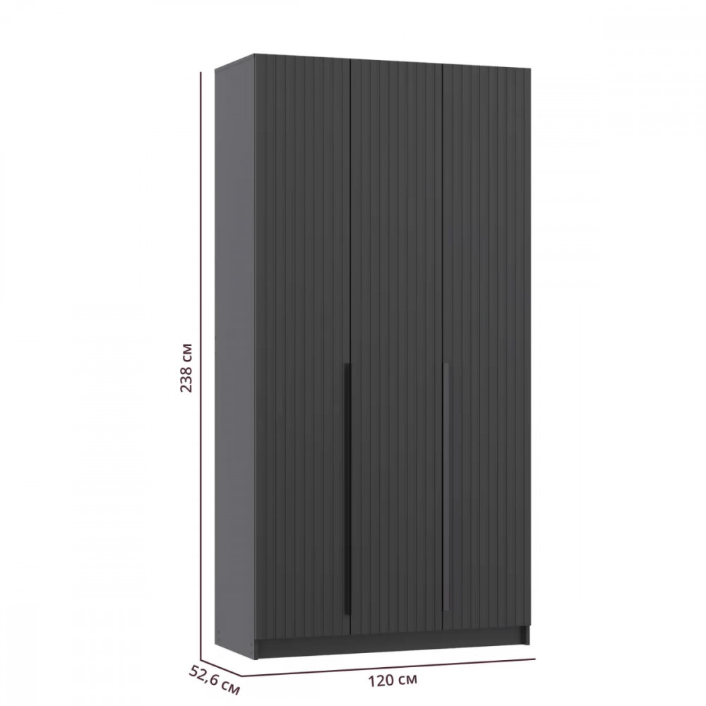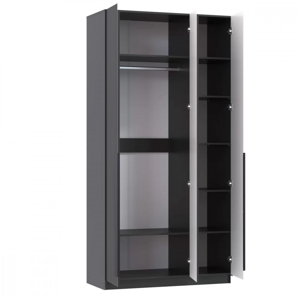 Шкаф для одежды 67.12 Брандо (3-х дв.) (h2400) New (диамант серый / ДВПО: белый / фасад: МДФ ПВХ графит / ручка L1000 металл черный) в Тюмени
