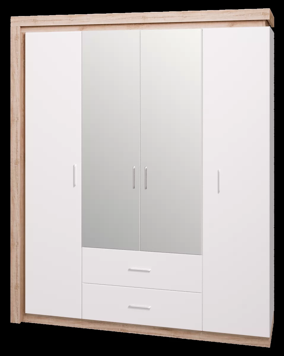 Шкаф для одежды с ящиками 4-х дверный с зеркалом «Люмен» №16 в Тюмени
