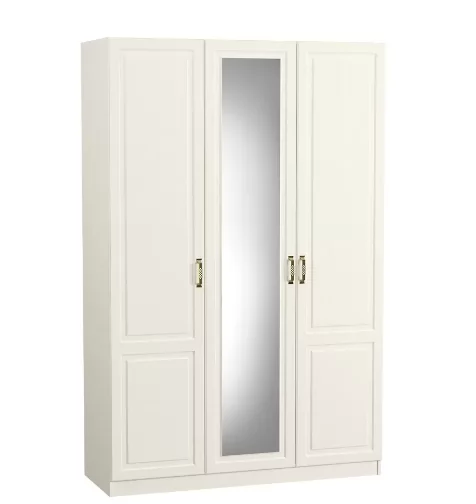 Комбинированный шкаф "Ливерпуль" - отличное решение для организации гардеробной зоны в спальне. Система хранения состоит из двух блоков с распашными дверцами. Большой блок представлен объемной нишей со штангой для вешалок, антресольной полкой и двумя отсеками для обуви или сумок. Второй блок оборудован множеством вместительных полок для размещения одежды, постельного белья или иных текстильных принадлежностей. Центральная дверца шкафа оформлена зеркальным полотном.