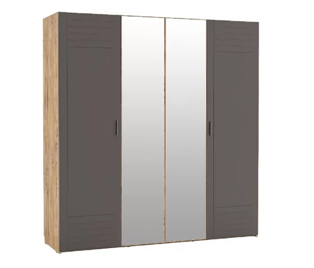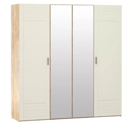 Четырехстворчатый шкаф LIVORNO НМ 013.58 станет достойной альтернативой гардеробной комнате, сэкономит пространство и задаст стиль интерьеру спальни. Внутри модуль разделен на две равные секции. В левой части шкафа находится секция из восьми полок для хранения одежды в сложенном виде. В правой половине модуля установлена штанга для одежды на вешалках плечиках. Зеркальные фасады добавят свет и визуально расширят комнату.