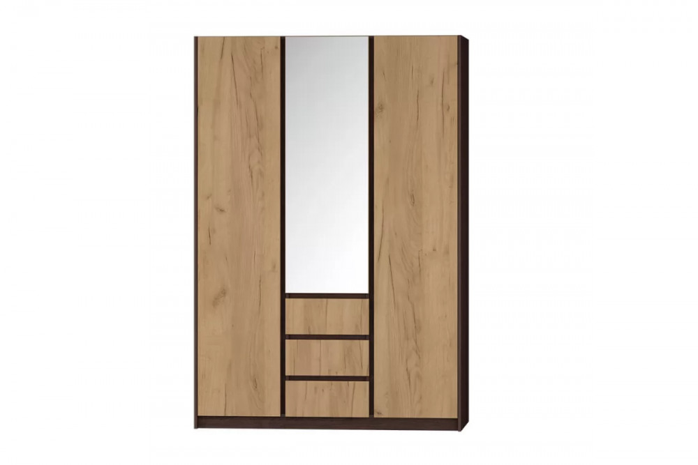 Шкаф имеет 2 отделения для размещения одежды на плечиках и отделение с полками.