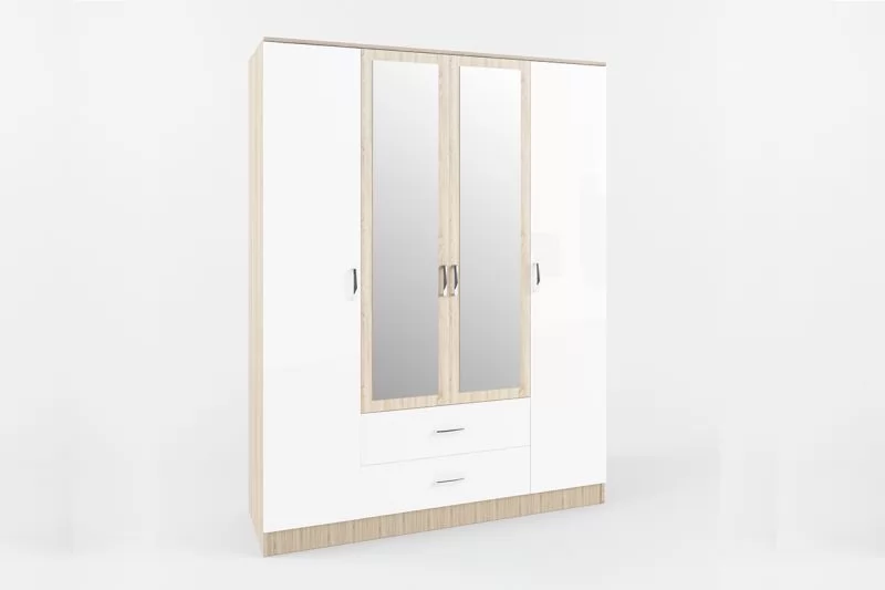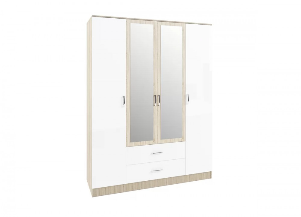 СОФИ СШК1600.1 Шкаф 4х ств с 2мя зерк, 2мя ящ, (ш1600*г540*в2100мм), ЛДСП дуб сонома/белый NEW в Тюмени